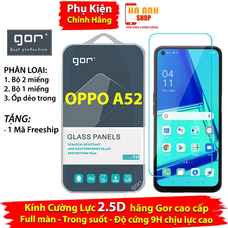Bộ 2 Kính Cường Lực Oppo A52 Full màn hãng Gor cao cấp(tặng mã freeship toàn quốc)