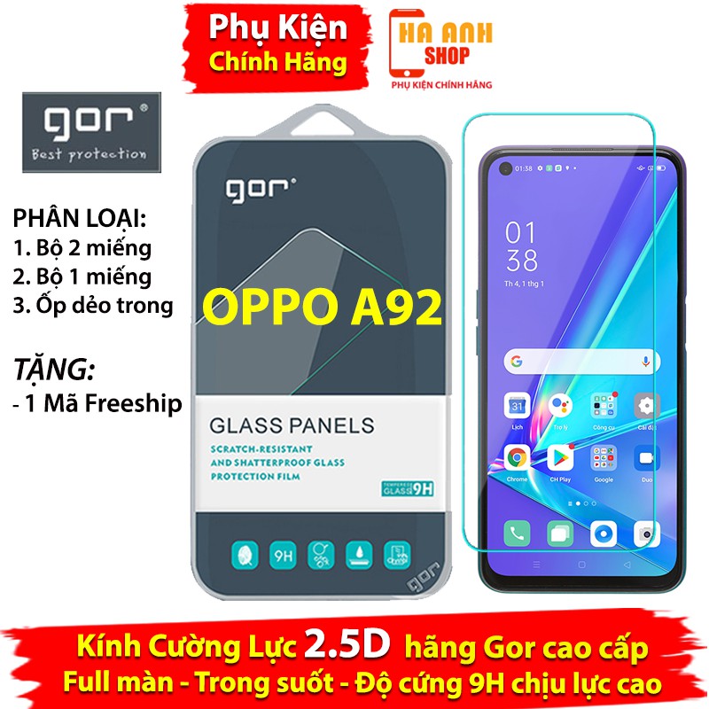 Bộ 2 Kính Cường Lực Oppo A92 Full màn hãng Gor cao cấp(tặng mã freeship toàn quốc)
