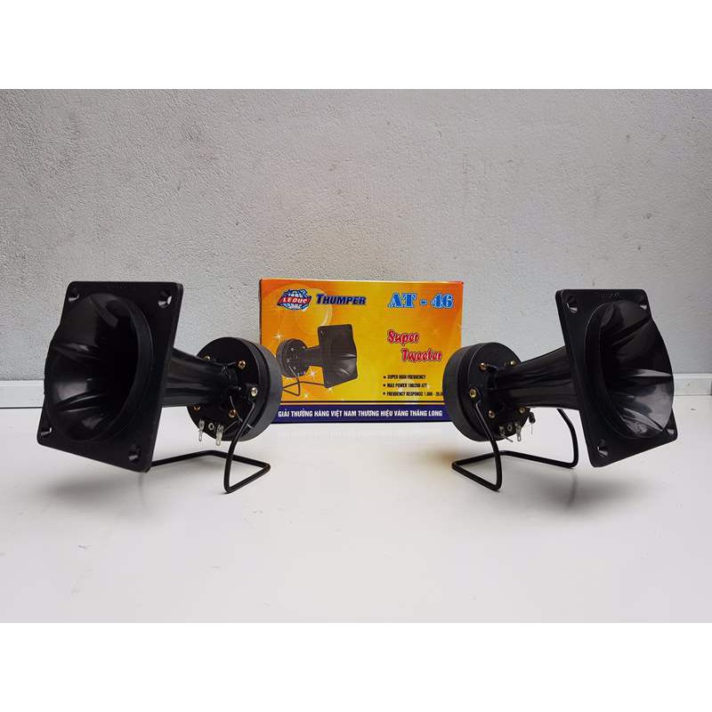 Cặp siêu Treble kèn 250 họng 12 , kèm tụlà sản phẩm chủ lực của hãng THUMPER, với thiết kế đặc biệt về kiểu dáng cũng như kết cấu: Loa được kết hợp bởi một loa treble kèn 250 nhằm bổ trợ tiếng trung và tiếng trép cho hệ thống âm thanh Nhất là thời kỳ hiện nay, nhạc Bolero đang nổi lên như vũ bão và hầu hết các dàn loa đều thiếu tiếng trép, lên nghe nhạc Bolero rất ngang và khô. Chính vì lý do đấy mà loa AT-46 là sự lựa chọn hàng đầu của các tín đồ âm nhạc