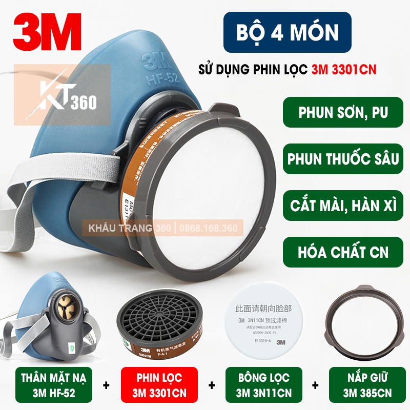 [2 LỰA CHỌN] Mặt Nạ Phòng Độc 3M HF-52. Khẩu Trang Phun Sơn - PU, Phun Thuốc Trừ Sâu. Mặt Nạ Chống Khí Độc - Chống Bụi.