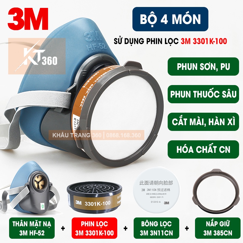 + Cấu tạo gồm: 1 Thân mặt nạ 3M HF-52 + 1 Phin lọc 3M 3301CN / 3301K-100 + 1 Bông lọc 3M 3N11CN + 1 Nắp giữ bông 3M 385CN