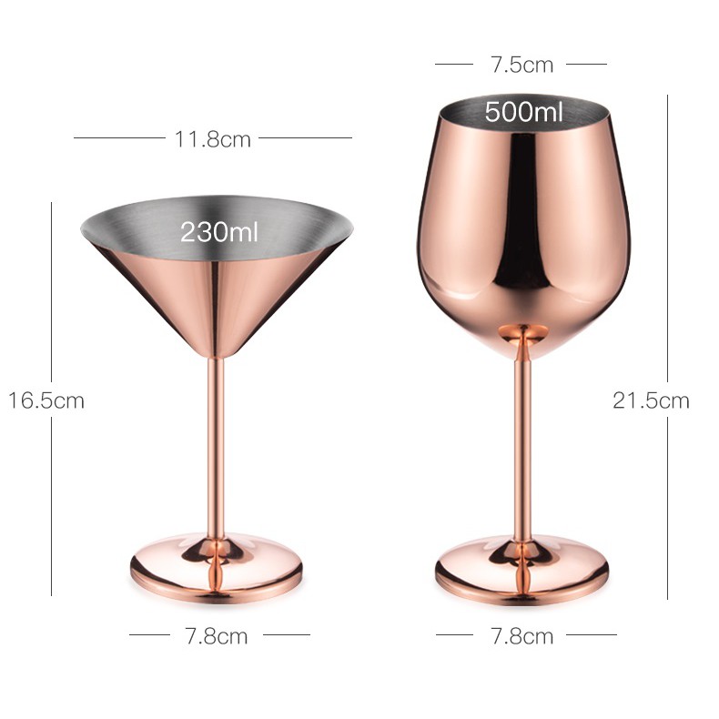Bộ 2 Ly Cocktail và Ly Rượu Inox 304 - (Cocktail : 12x16.5cm 230ml, Ly Rượu : 7.5x21.5cm 500ml)