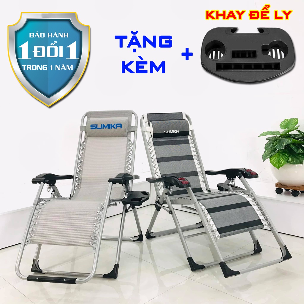 2 mẫu ghế xếp thư giãn đa năng SUMIKA 179 & 199 (bảo hành 1 năm, tải trọng 300kg, tặng khay để ly) ghế bố
