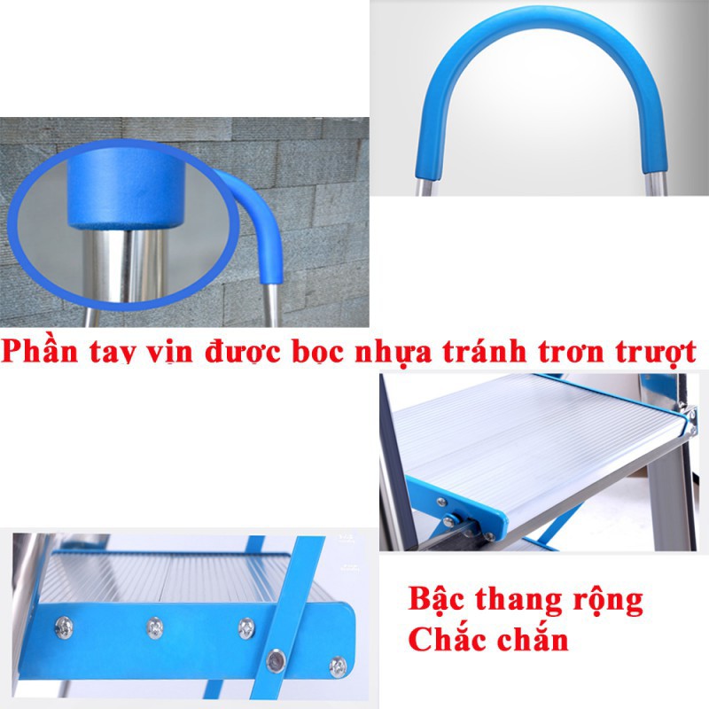 - đảm bảo an toàn cho người sử dụng.- Chân thang được làm bằng cao su, tăng thêm độ bán cho thang không bị trơn trượt đảm bảo an toàn cho người sử dụng.