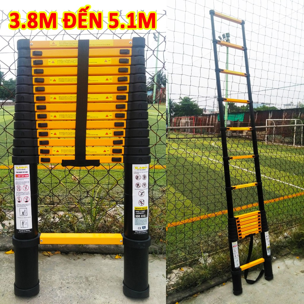 2 Mẫu thang nhôm rút đơn xếp gọn chính hãng SUMIKA (cao từ 3.2m đến 6m) tải trọng 300KG, bảo hành 2 năm,thang đa năng