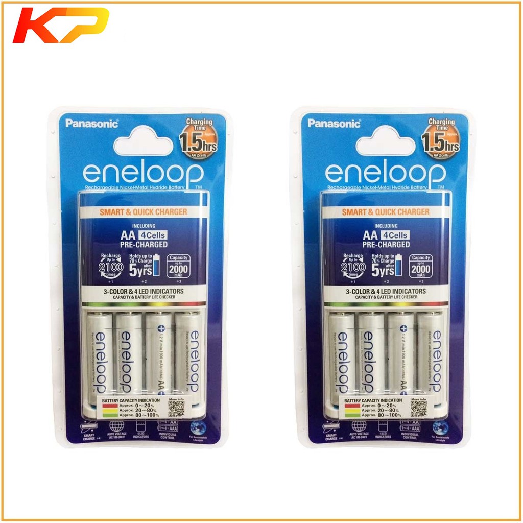 2 Máy sạc Eneloop Panasonic kèm 4 pin AA 2000mah, sạc nhanh, tự ngắt BQ-CC55E