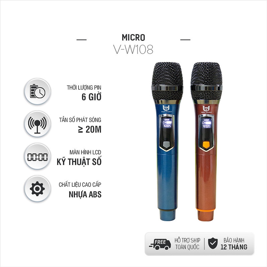 Bộ 2 Micro Karaoke Không Dây Cực Hay W108 - Kết Nối Xa - Hút Âm Cực Tốt - Hát Cực Nhẹ - Tần Số VHFChất liệu: Hợp kim nhôm