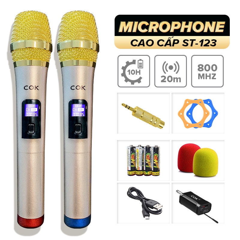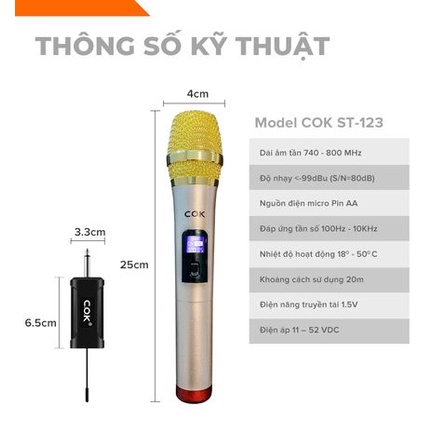 Bộ 2 micro Karaoke không dây đa năng - Micro karaoke cho loa kéo, dàn amply - Micro karaoke UHF COK
