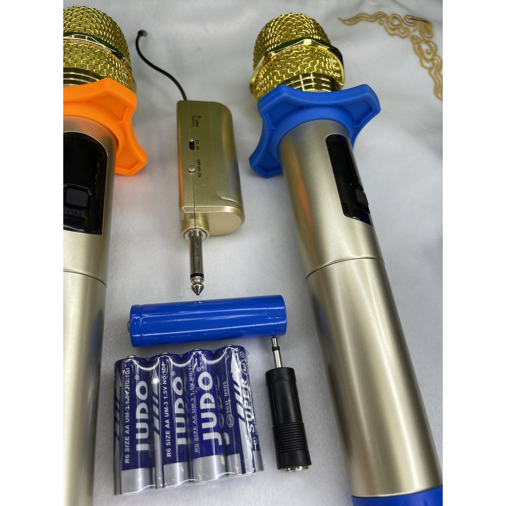 👉 Với đầu recceive dễ dàng sử dụng cắm vào amply hoặc loa là chúng ta đã có thể sử dụng cả 2 mic mà không cần cài đặt hay thao tác gì nữa. 2 chiếc micro được thiết kế đẹp và cầm nắm rất đầm chắc , cao cấp.
