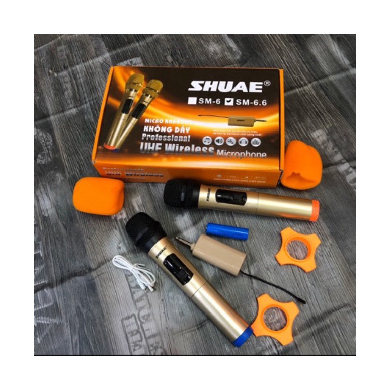 Thiết Bị Âm Thanh > Micro thu âm || Bộ 2 micro Karaoke không dây SHUAE SM-6.6 hỗ trợ thiết bị có jack cắm 6.5mm (nhiều màu)Còn hàng