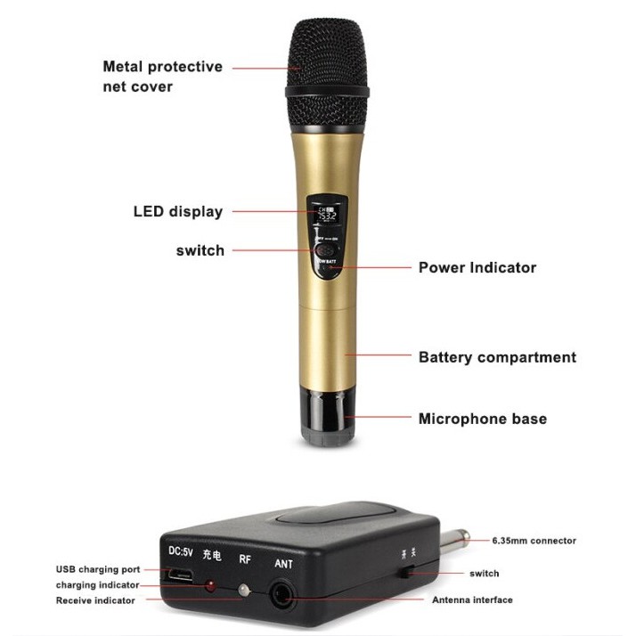 5. Cắm và chơi, đầu thu được cắm vào âm thanh Micro 6.5mm giao diện, và nó có thể được sử dụng sau khi bật