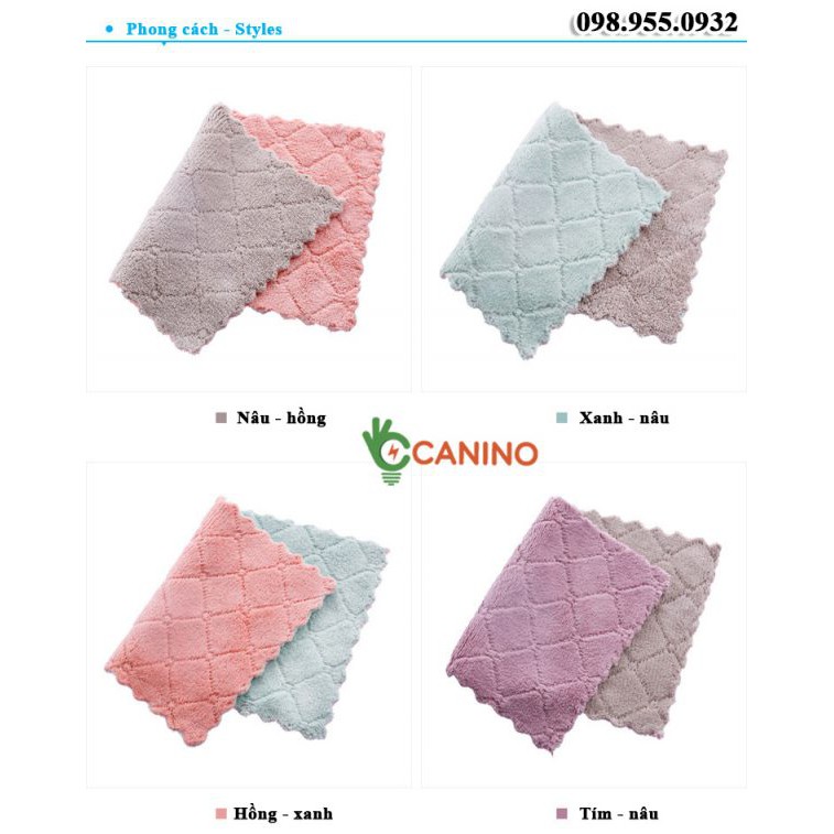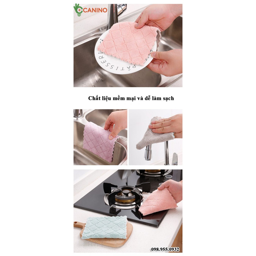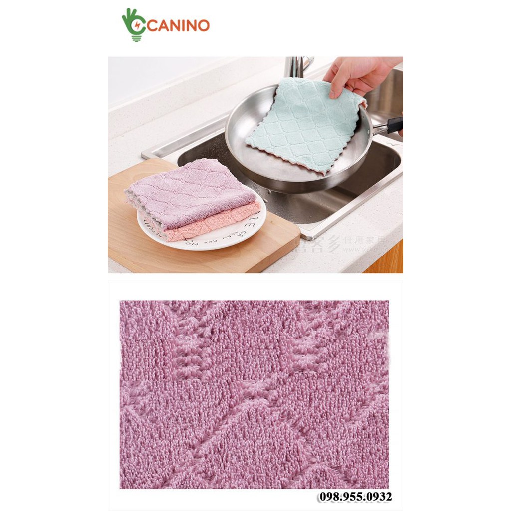 – Bộ 5 miếng khăn lau bàn canino gồm có 2 mặt làm sạch vết bẩn, hiệu quả trong việc lau sạch và làm khô chén dĩa, ly tách,