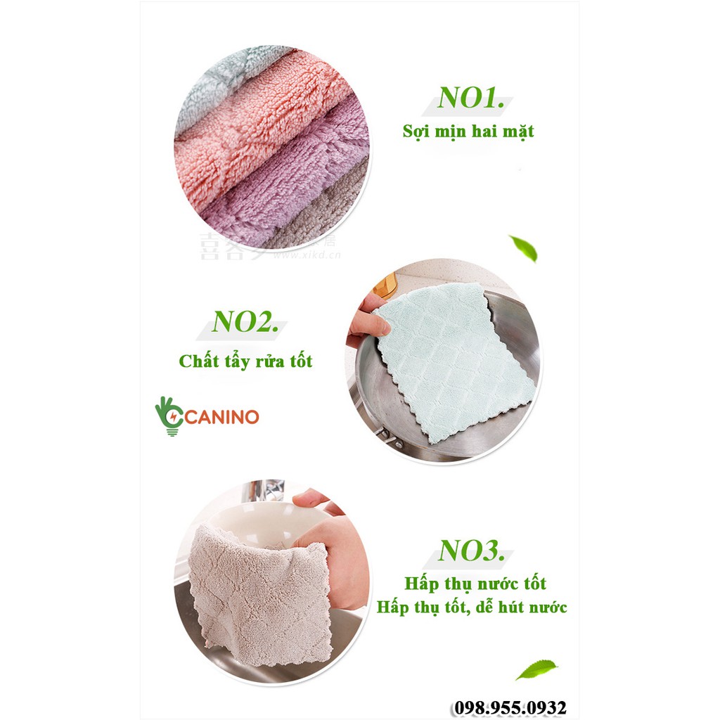 – Bộ 5 miếng khăn lau bàn canino gồm có 2 mặt làm sạch vết bẩn, hiệu quả trong việc lau sạch và làm khô chén dĩa, ly tách,
