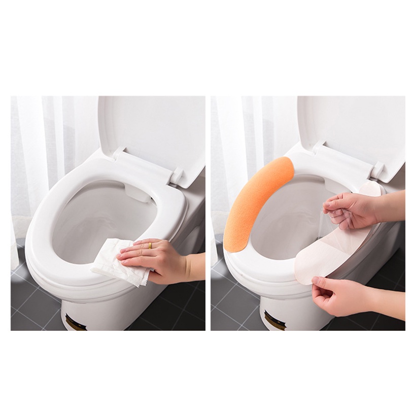 Sản phẩm gồm 02 miếng dán được làm bằng nỉ. Ở mặt sau của tấm lót có gắn miếng dán để cố định vào mặt bồn cầu giúp miếng lót không bị rơi ra ngoài hay trôi trong quá trình sử dụng.