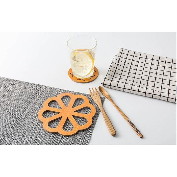 Nhà cửa & Đời sống > Bộ đồ bàn ăn > Khay, tấm lót bàn ăn || Bộ 2 miếng lót nồi, lót cốc cách nhiệt bàn ăn bàn bếp bằng gỗ ngộ nghĩnhCòn hàng