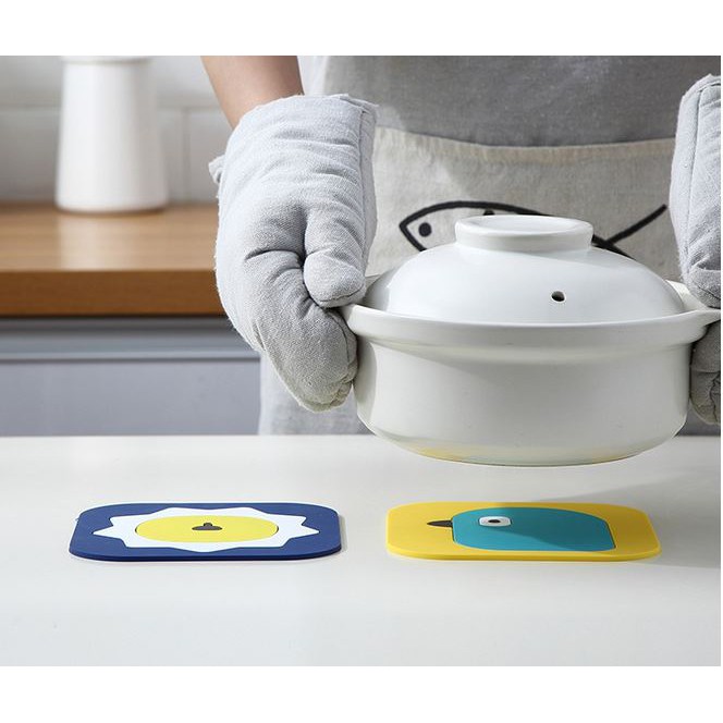Nhà cửa & Đời sống > Bộ đồ bàn ăn > Khay, tấm lót bàn ăn || Bộ 2 miếng lót nồi, lót ly chất liệu silicone siêu dày họa tiết dễ thương KN STORE (2 kích thước)Còn hàng