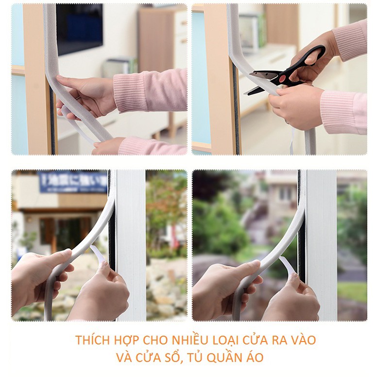 Cuộn mút dán làm khíp khe hở tiện lợi dùng dán các khe cửa bị hở. Giúp chống bụi, phấn hoa, côn trùng... xâm nhập vào nhà qua khe hở.Làm kín các khe hở giữa các cánh cửa, dưới chân cửa, không gây tổn hại đến cửa hoặc sàn nhà, ngăn chặn bụi từ bên ngoài len qua các chân cửa.
