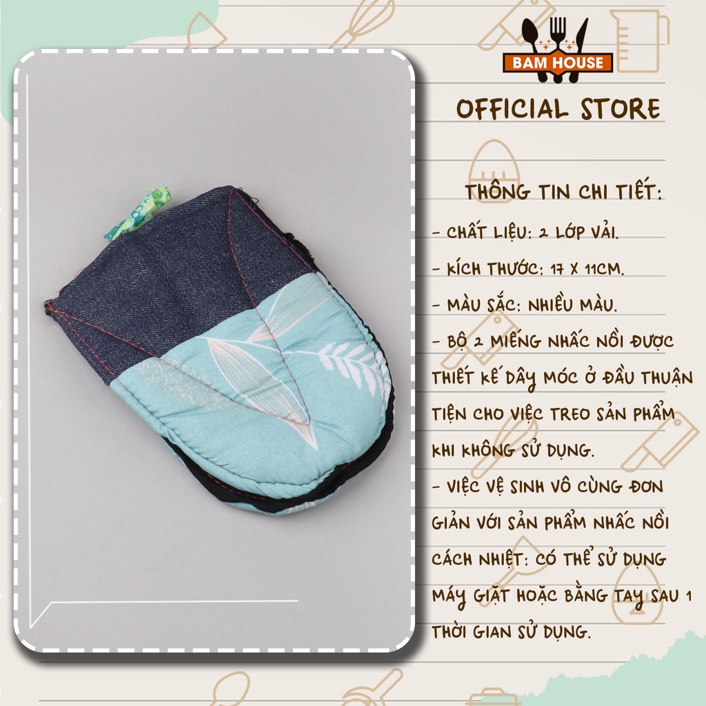 Tên sản phẩm: Bộ 2 miếng nhấc nồi Bam House vải dày cao cấp MNO01