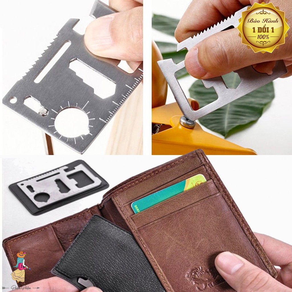 Bộ 2 miếng thép đa năng 11 công dụng thẻ phượt đa năng Steel Credit Card Survival Tool màu bạc Phặn Phặn