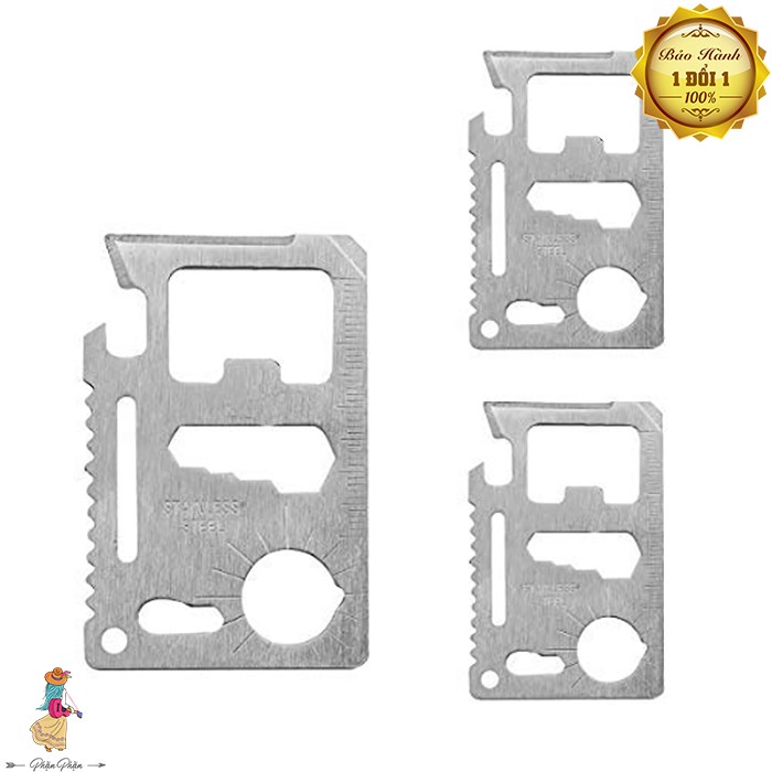 Nhà cửa & Đời sống > Dụng cụ & Thiết bị tiện ích > Dụng cụ > Khác || Bộ 2 miếng thép đa năng 11 công dụng thẻ phượt đa năng Steel Credit Card Survival Tool màu bạc Phặn PhặnCòn hàng