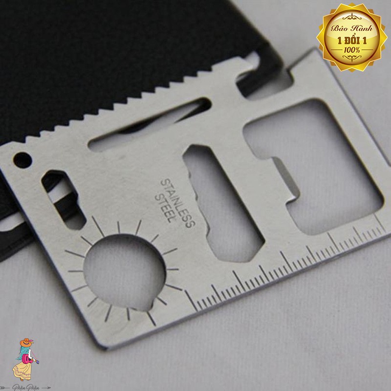 Miếng Thép Đa Năng 11 Công Dụng Thẻ Phượt Đa Năng - Steel Credit Card Survival Tool (Màu Bạc) được thiết kế độc đáo trên bề mặt chỉ cỡ bằng một chiếc card visit. Tùy từng trường hợp cụ thể mà chúng sẽ “hóa thân” và làm nhiệm vụ khác nhau như: khui các loại đồ hộp và nắp chai, làm một con bén, dùng để vặn ốc vít, làm thước kẻ, hay vặn bulon 4 cạnh…- Một tấm thép dày chưa đến 3mm, rộng 7cm, và chiều ngang chỉ 4.5 cm, nhỏ bé thế thôi nhưng nó lại có đến tận 11 công dụng khác nhau.