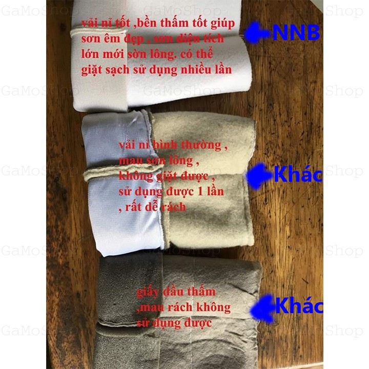 Chất liệu được làm bằng vải nỉ siêu bền, điều này cũng tạo cho bề mặt sơn mịn ,không bị nổi bọt và không để lại vết hằn như các loại con lăn bình thường.