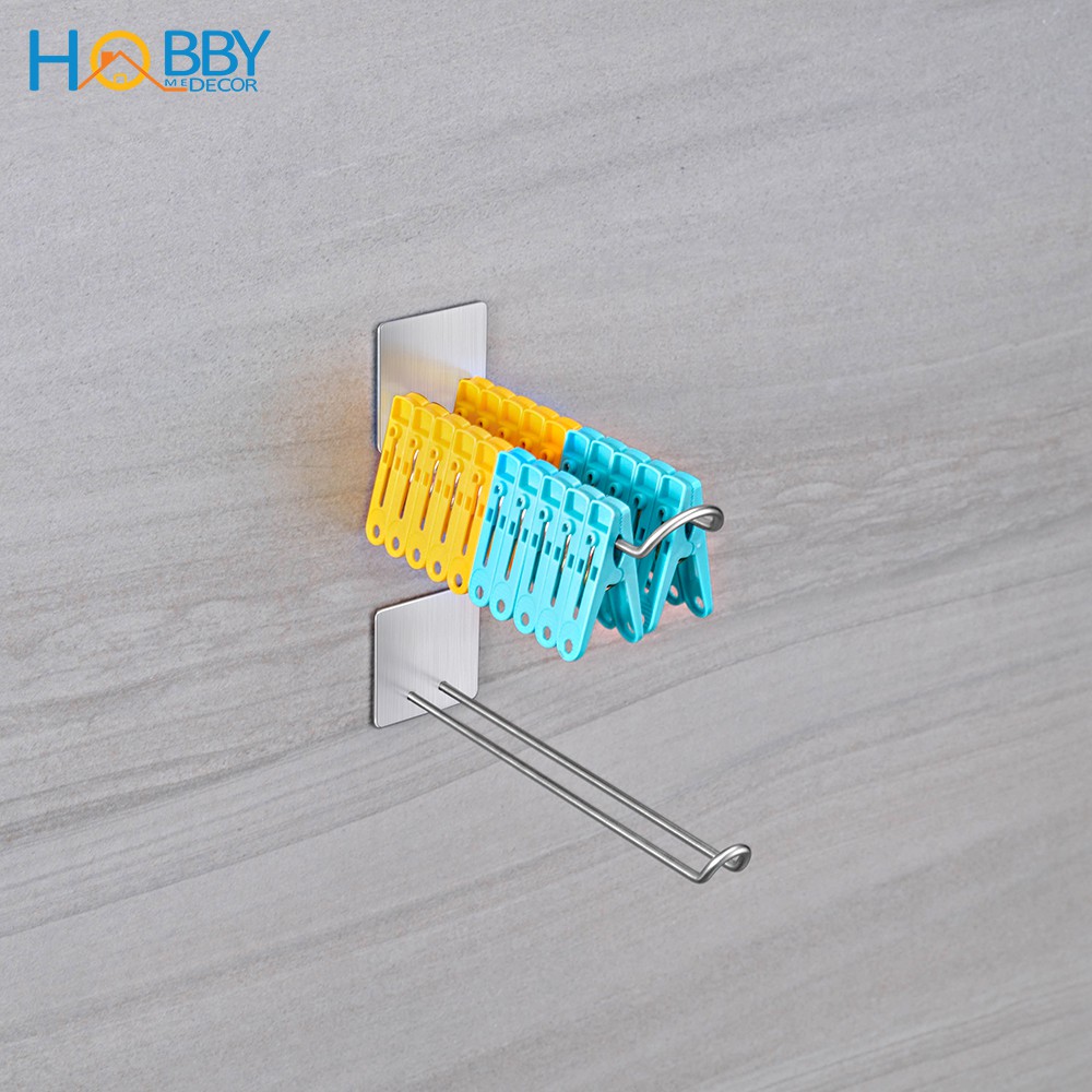 Nhà cửa & Đời sống > Dụng cụ chăm sóc nhà cửa > Dây phơi & giá phơi quần áo || Bộ 2 móc kẹp phơi quần áo cho gọn HOBBY Home Decor GPMD chuẩn Inox 304 không rỉ dán tường gạch men nhà bếp, phòng tắmCòn hàng