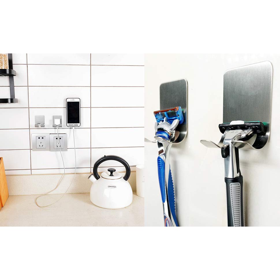 Nhà Cửa & Đời Sống > Đồ dùng phòng tắm > Giá, móc treo đồ nhà tắm || Bộ 2 móc treo HOBBY PC12 Inox 304 dán tường gạch men - treo phích cắm, đồ cạo râuCòn hàng