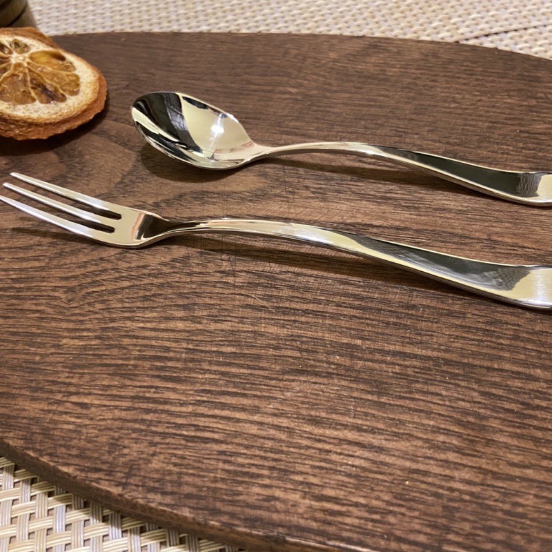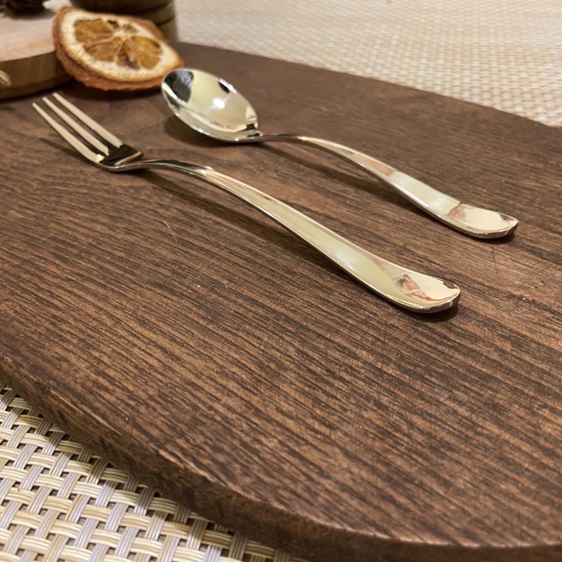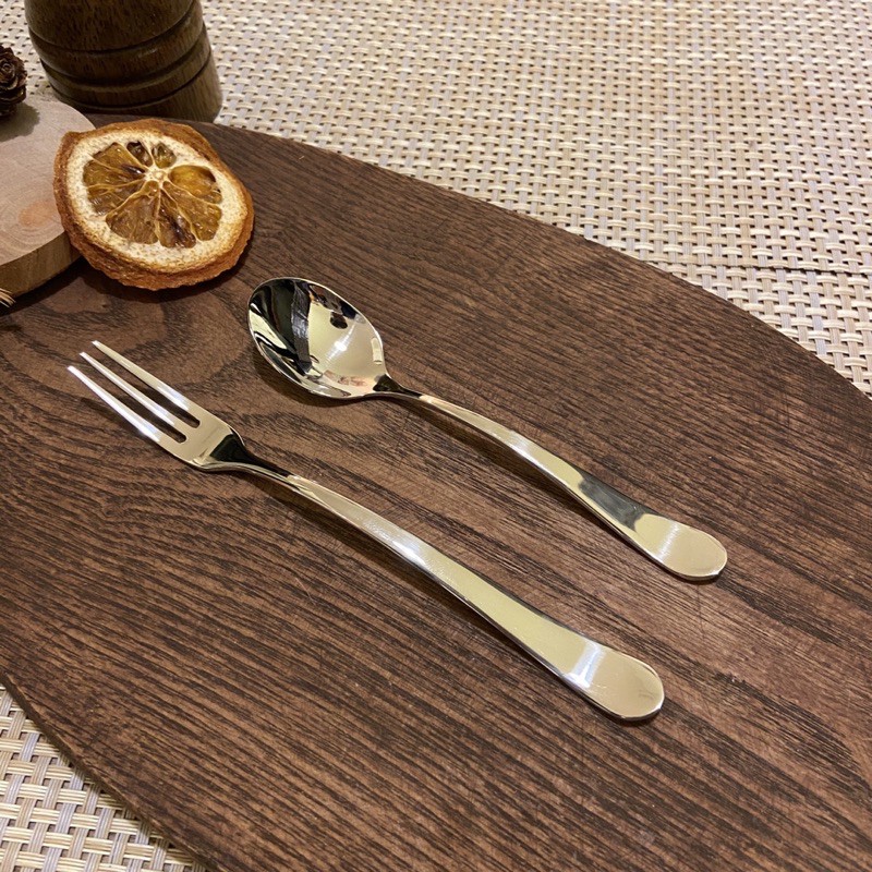 🍴 Thìa cà phê, dĩa/nĩa trái cây kiểu dáng nhỏ gọn, độ cong tinh tế, giúp tô điểm thêm vẻ đẹp cho ly cà phê và đĩa hoa quả.