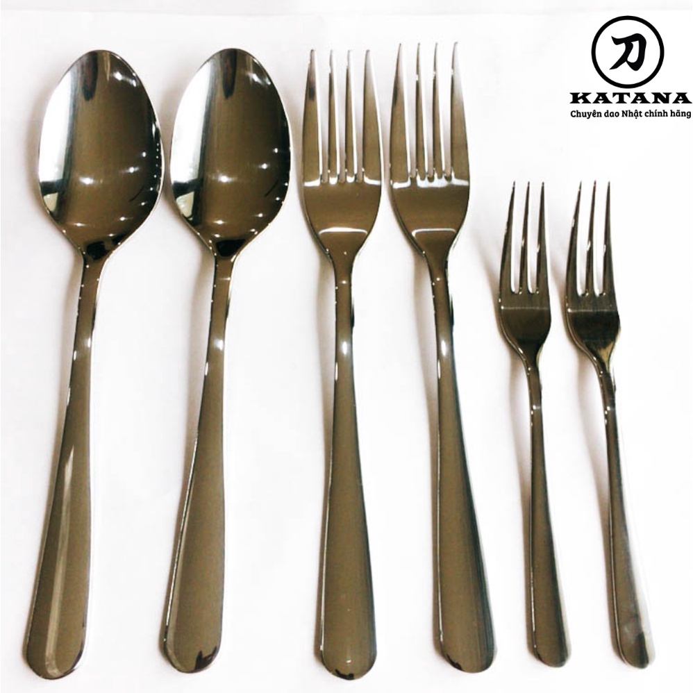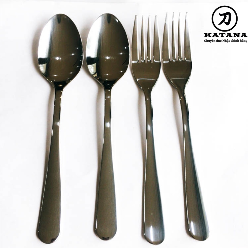 Bộ 2 món thìa/dĩa ăn Daily KATANA inox cao cấp nguyên khối, dày đẹp, sáng bóng