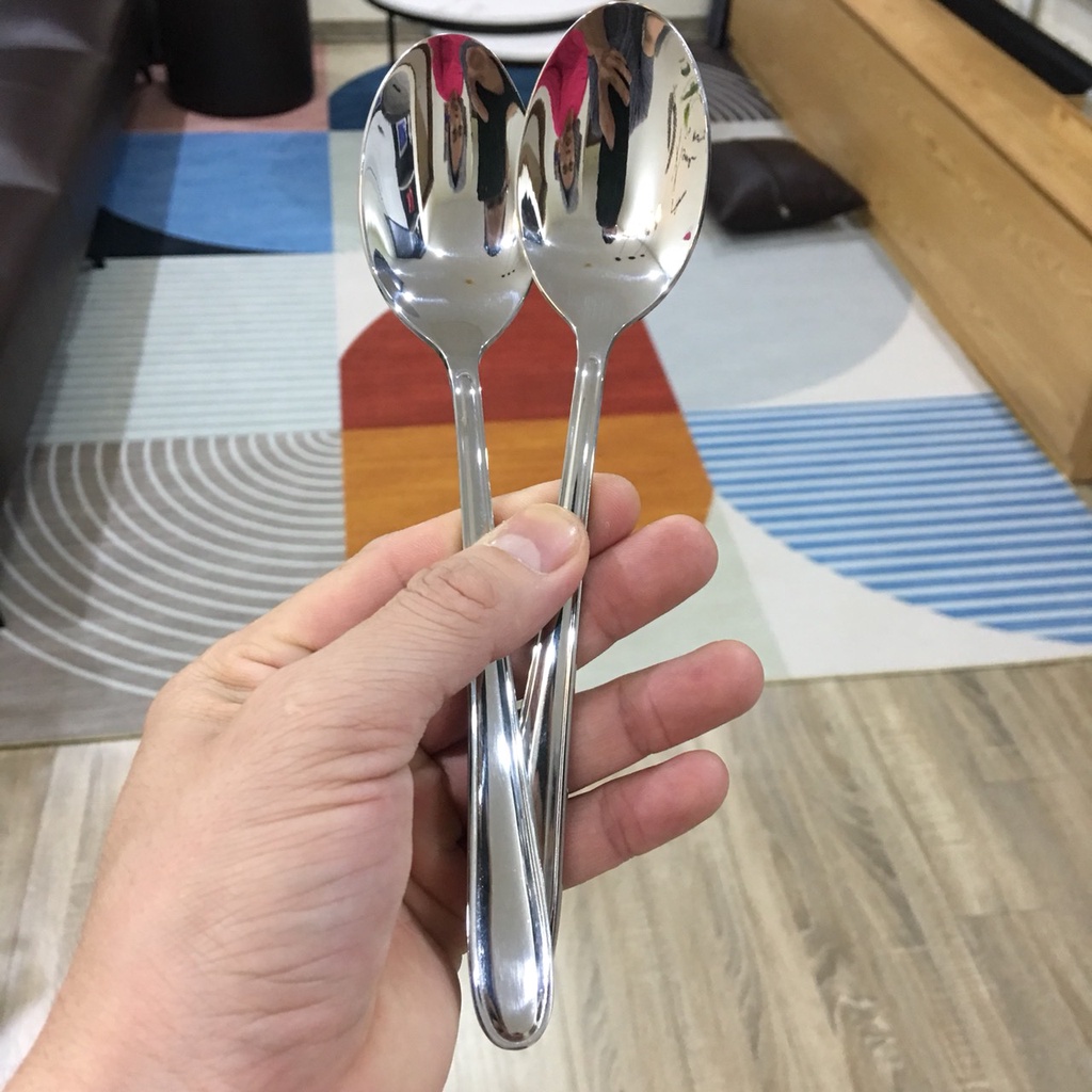 - Chất liệu bền, an toàn: Bộ 2 muỗng làm từ inox cao cấp có độ sáng bóng cao, không bị phai màu, ít trầy xước và đặc biệt khi dùng với thức ăn nóng bạn sẽ không có cảm giác nóng tay cầm.
