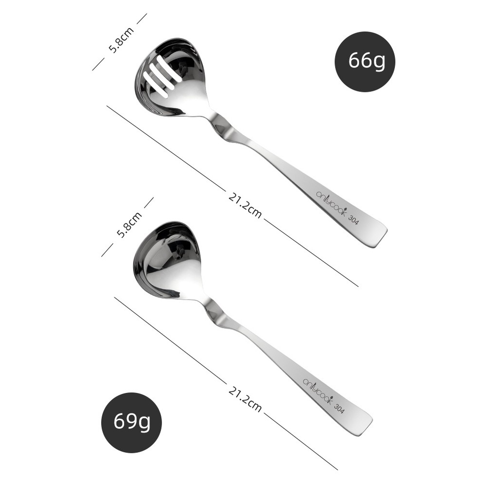 Bộ 2 Muỗng Inox 304 - Onlycook - 21.2x5.8cm ( Muỗng : 69g ) ( Muỗng Lổ : 66g )