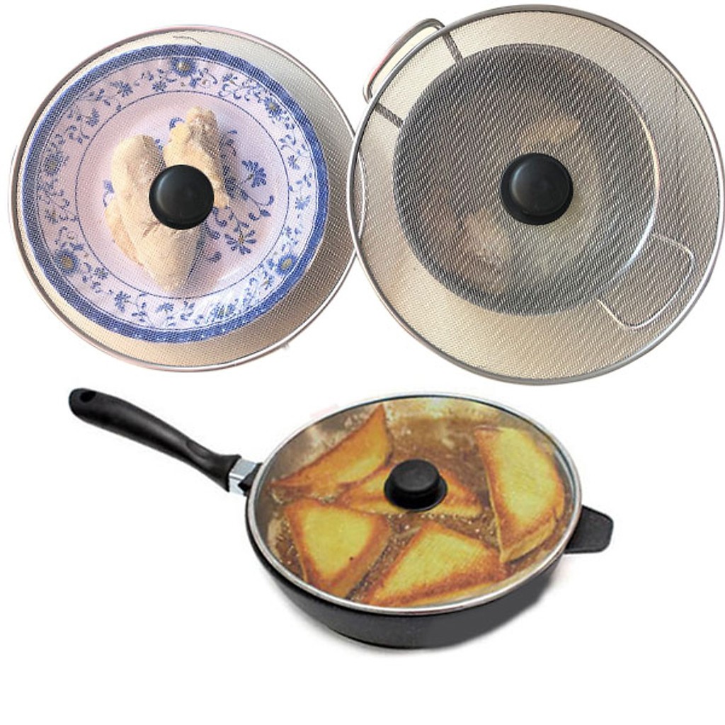 Chất liệu inox được đan nhỏ để ngăn chặn dầu mỡ văng ra ngoài gây bỏng đau rát .