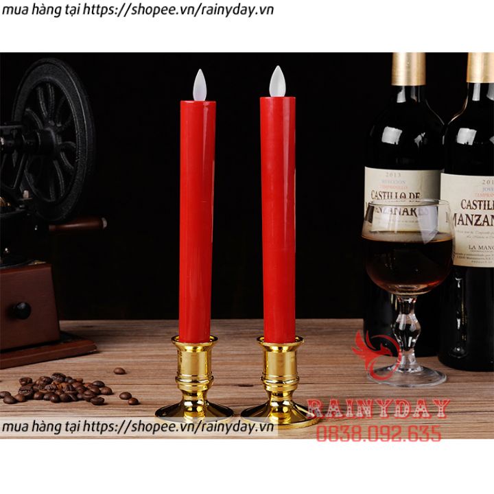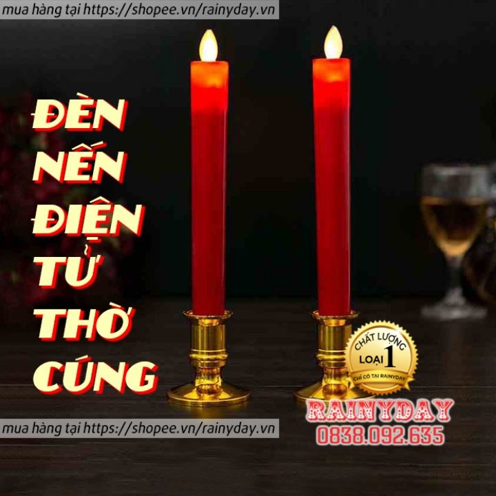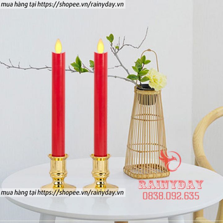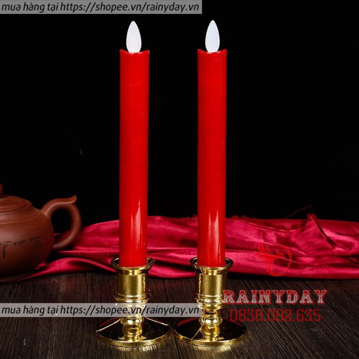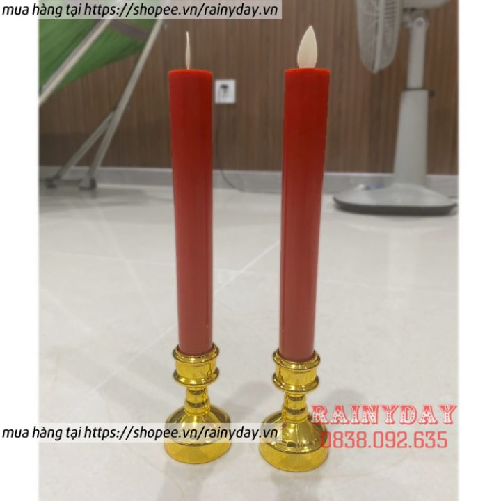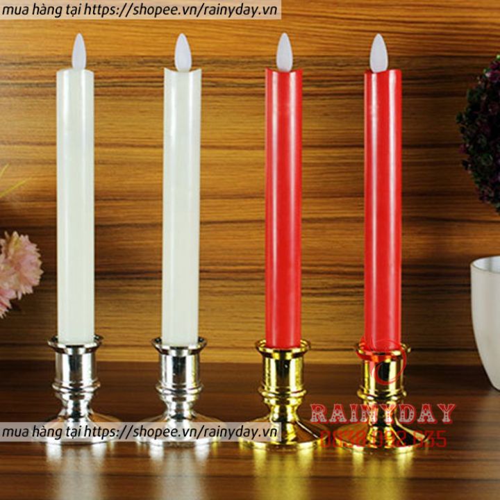 Bộ 2 nến điện tử ban thờ, đèn nến điện tử trang trí bàn thờ để thờ cúng dùng pin tim lắc có chân đế
