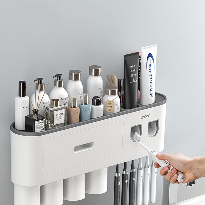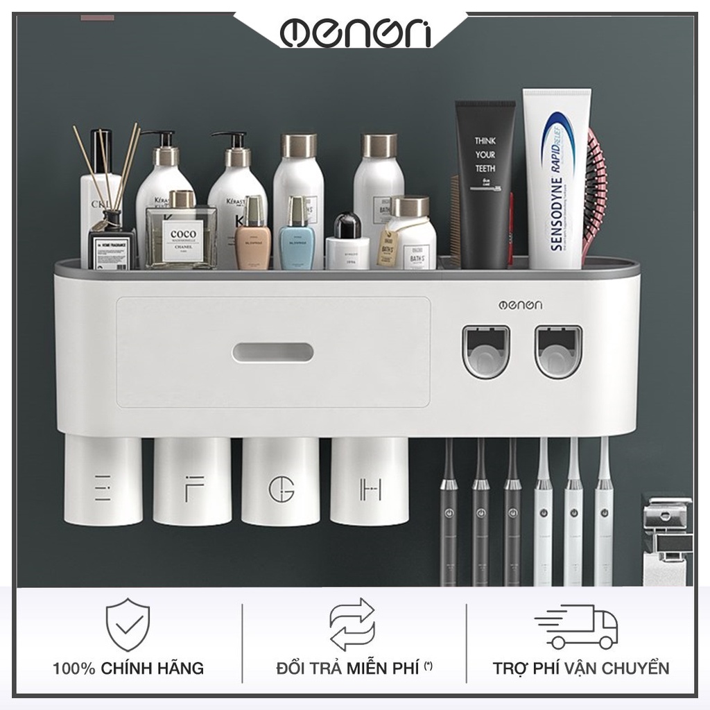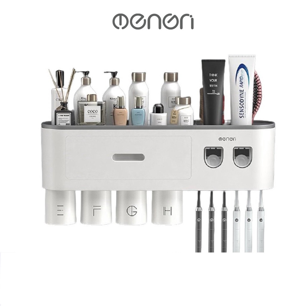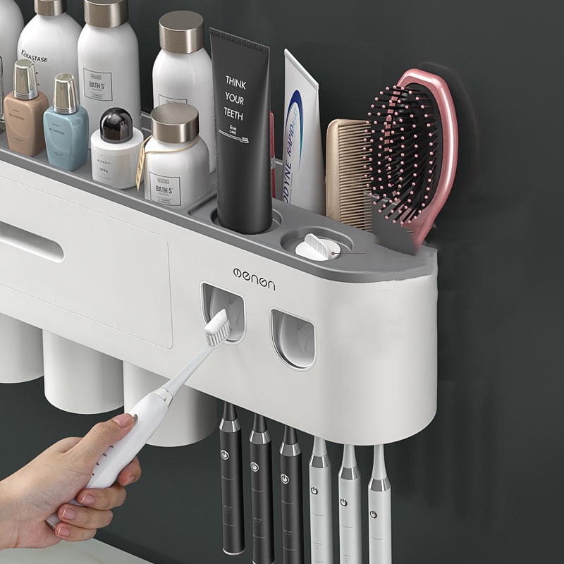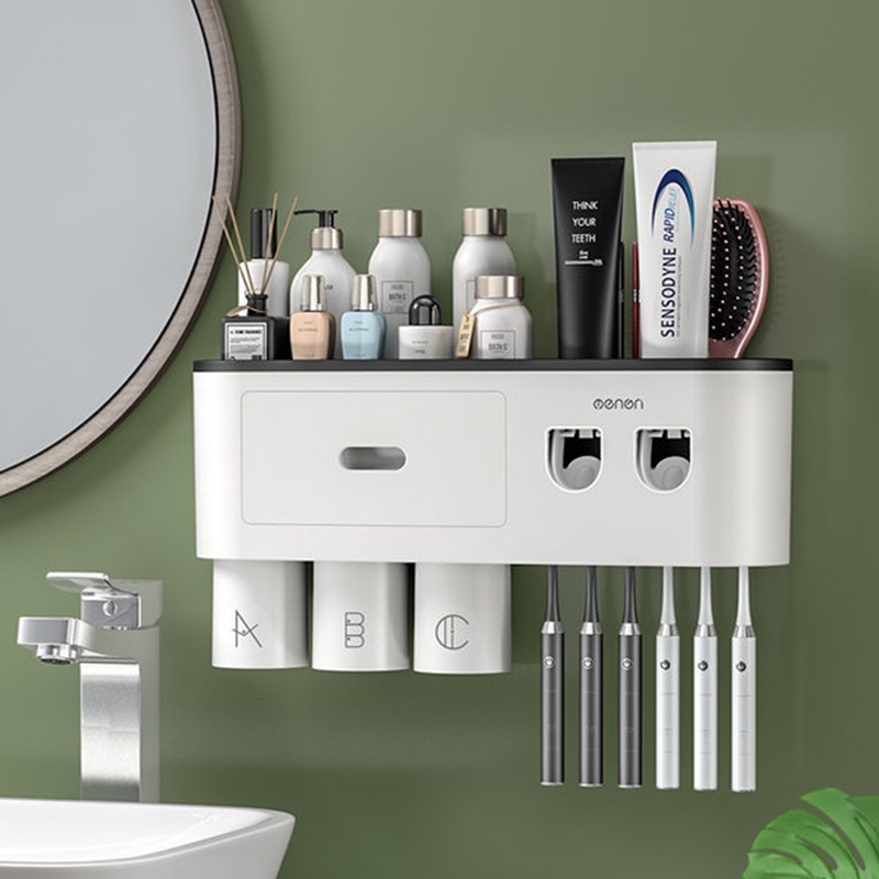 Bộ 2 Nhả Kem Đánh Răng Tự Động OENON - Kệ Treo Bàn Chải Lắp Đặt Dán Tường Gạch Men Kèm Cốc Hút Nam Châm