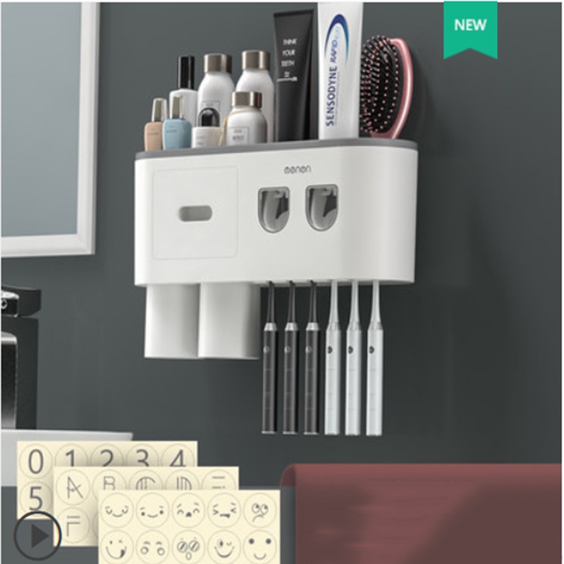 Giới thiệu Bộ 2 Nhả Kem Đánh Răng Tự Động OENON - Kệ Treo Bàn Chải Lắp Đặt Dán Tường Gạch Men Kèm Cốc Hút Nam Châm
