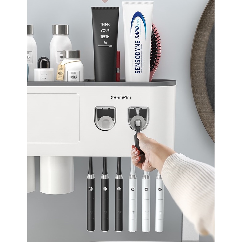 Bộ 2 Nhả Kem Đánh Răng Tự Động OENON, Giá Đựng Bàn Chải Kem Đánh Răng- Sản phẩm có 2 nhả kem đánh răng tự động 1 cho Bố Mẹ 1 cho Con Yêu