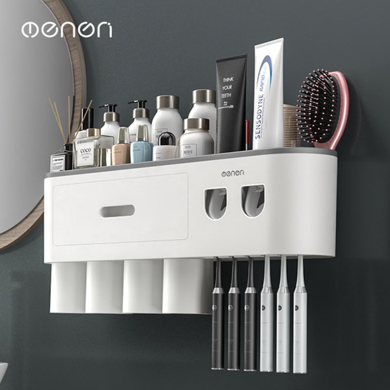 Bộ 2 Nhả Kem Đánh Răng Tự Động OENON, Kệ Để Đồ Nhà Tắm Thông Minh Dán Tường Gạch Men - 2NHAKEM