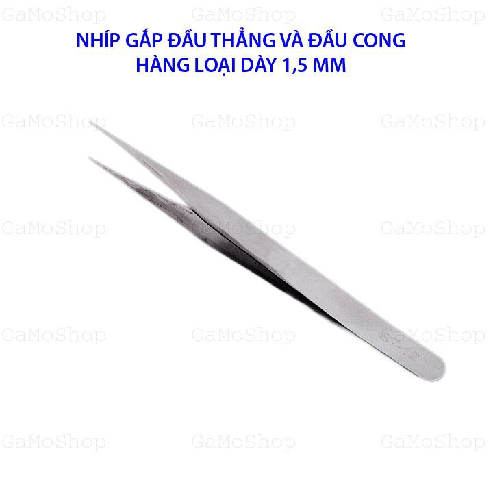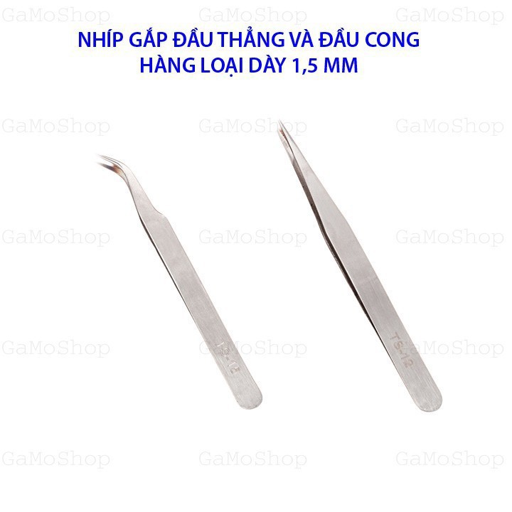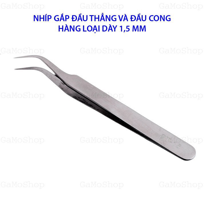 Bộ 2 Nhíp gắp đầu thẳng và đầu cong TWEEZERS loại dày 1,5MM