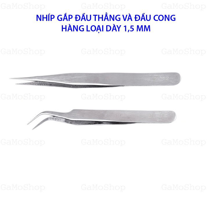 Giới thiệu Bộ 2 Nhíp gắp đầu thẳng và đầu cong TWEEZERS loại dày 1,5MM