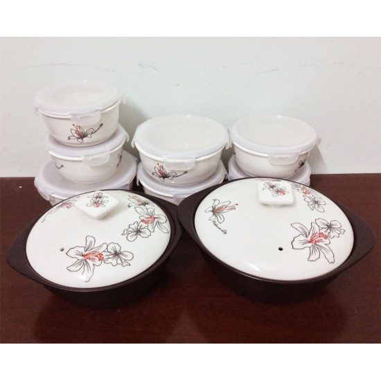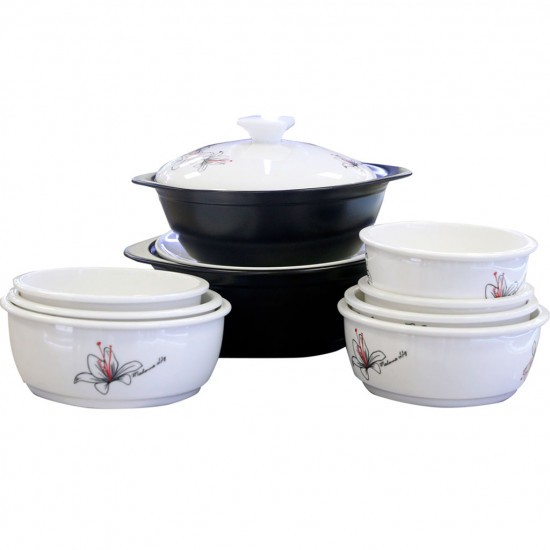 Bộ 2 nồi đất và 7 thố gốm sứ cao cấp Hoa Ly DongHwa Hàn Quốc LG