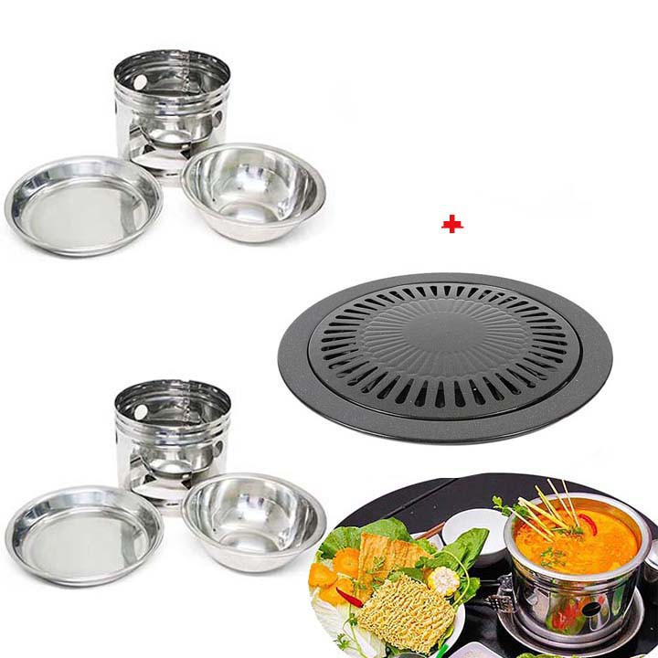 Nhà cửa & Đời sống > Dụng cụ nhà bếp > Lò nướng & phụ kiện || Bộ 2 Nồi Lẩu Bếp Cồn Inox Tặng Vỉ Nướng tiện dụngCòn hàng