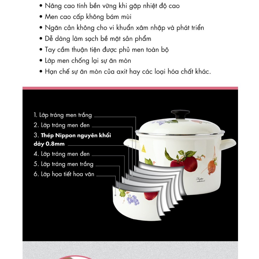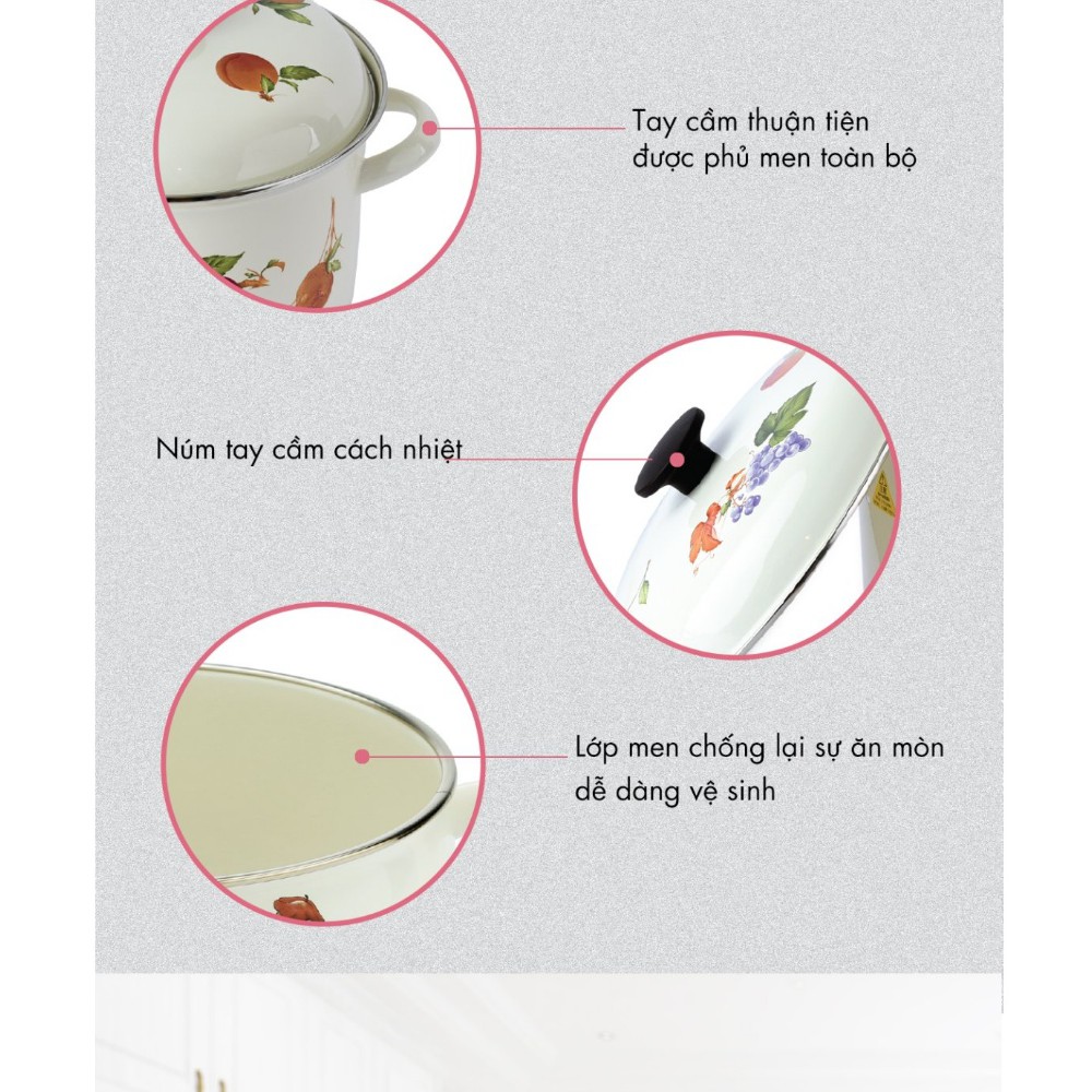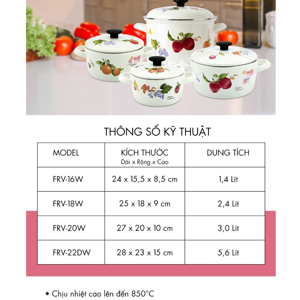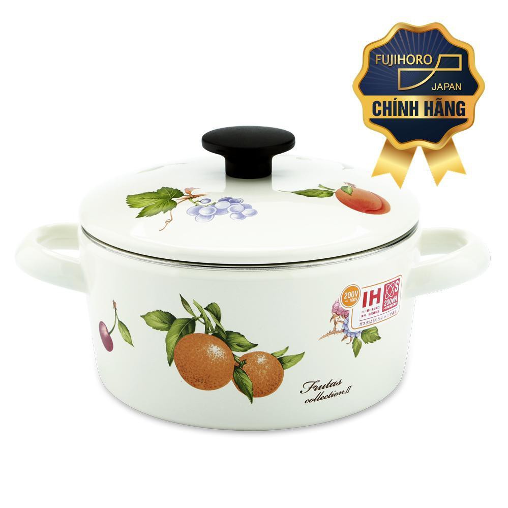 Bộ 2 nồi tráng men FUJIHORO (16cm, 20cm) Hoa văn trái cây FRV-2 sử dụng bếp từ