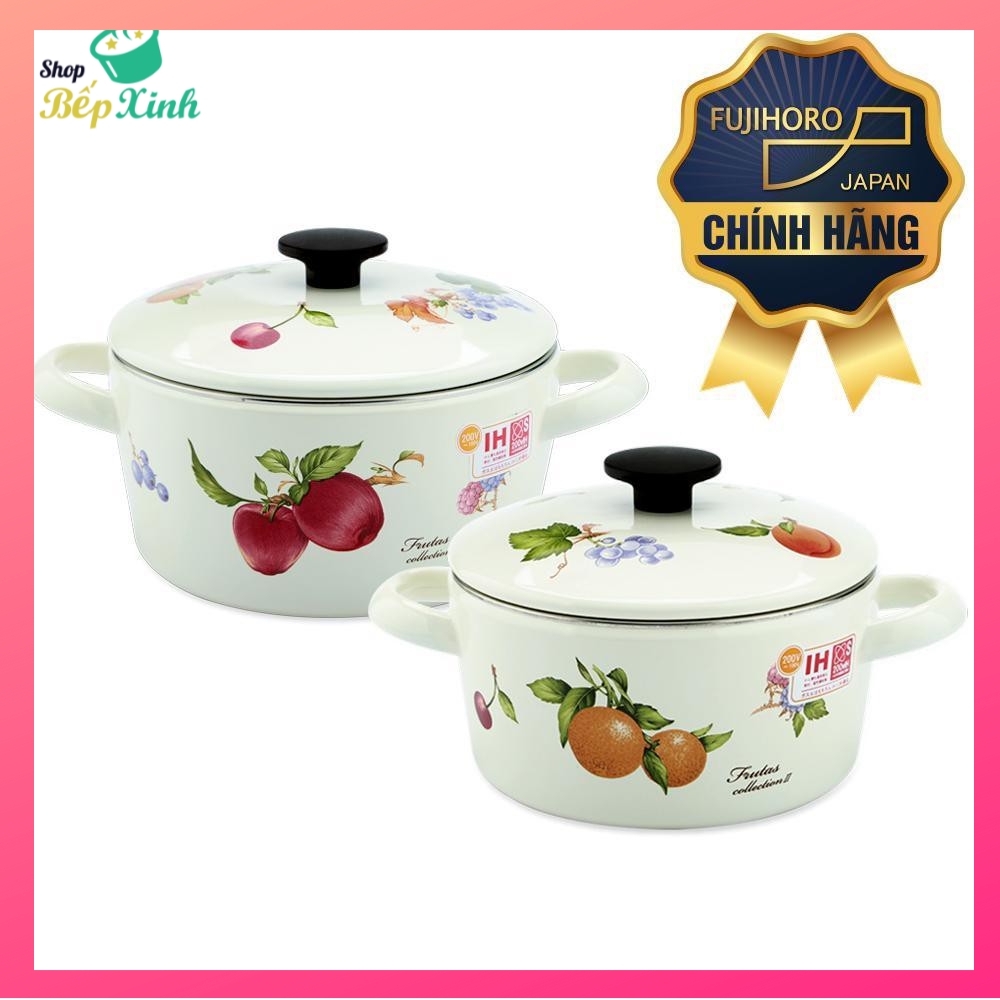 Nhà cửa & Đời sống > Dụng cụ nhà bếp > Nồi || Bộ 2 nồi tráng men FUJIHORO (16cm, 20cm) Hoa văn trái cây FRV-2 sử dụng bếp từCòn hàng