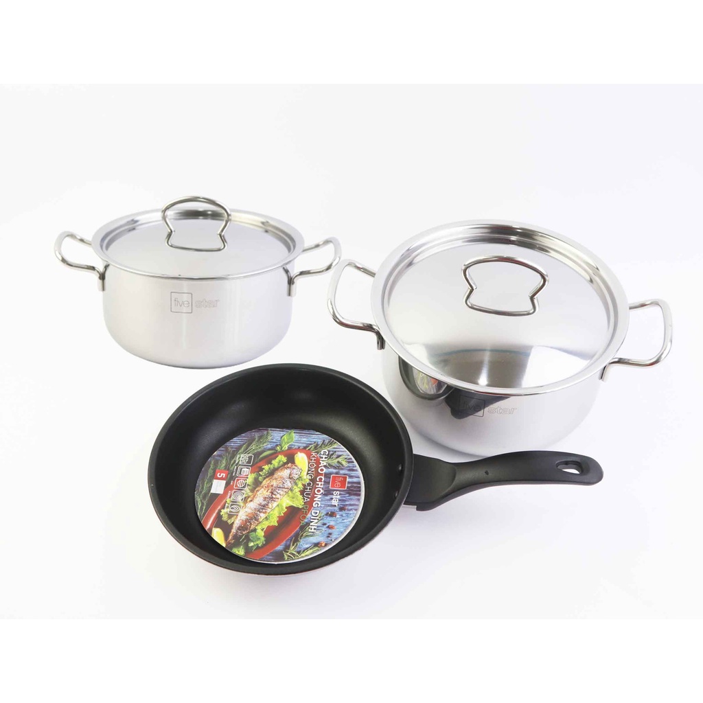 Bộ 2 nồi và 1 chảo chống dính 3 đáy từ inox 430 FiveStar Standard nắp inox ( tặng 2 vá canh )