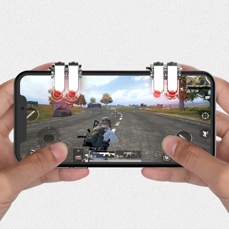 Bộ 2 nút bấm chơi game loại T6 cơ thép không gỉ chơi PUBG, ROS, FREE FIRE, KNIGHT OUT trên điện thoại- Chất liệu gia công tốt hơn, khi bấm tạo ra tiếng kêu tạch tạch của thép.
