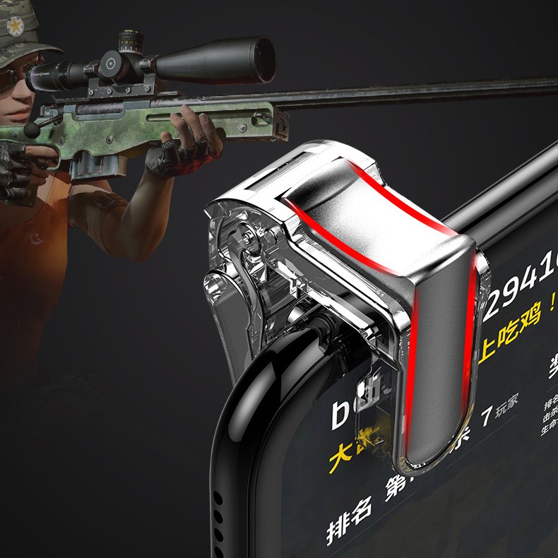 Bộ 2 Nút Bấm Chơi Game PUBG Dạng Kẹp MINI Hỗ Trợ Chơi Game PUBG. Với bộ 2 nút bấm chơi game PUBG chuyên dụng cho điện thoại thiết kế hỗ trợ các bạn chơi game phát huy hết khả năng của mình với 4 ngón điều khiển khi chơi.-Chất liệu gia công tốt hơn, khi bấm tạo ra tiếng kêu tạch tạch.