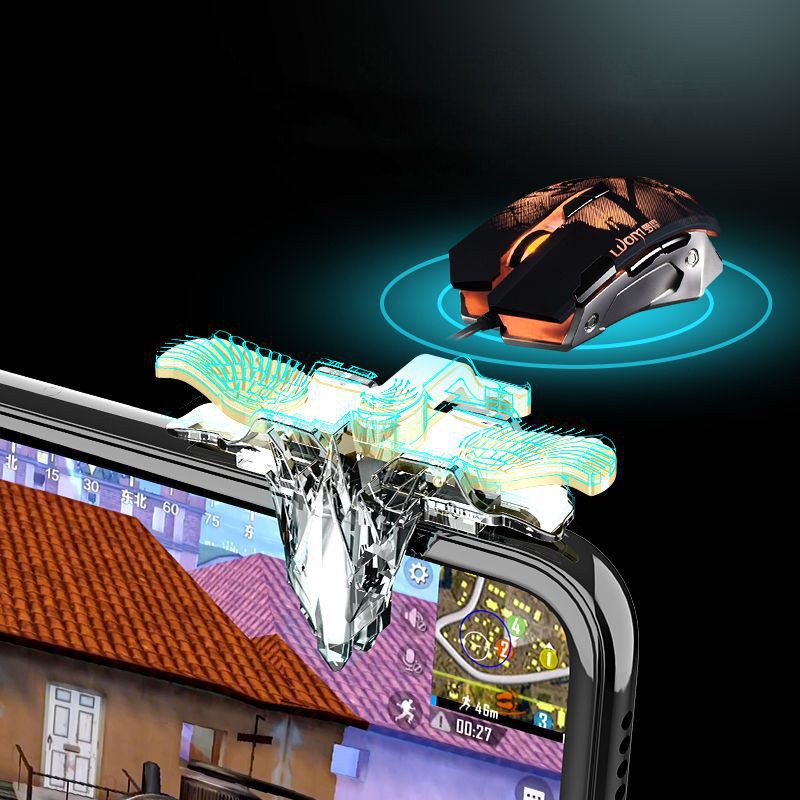 Giới thiệu Bộ 2 nút bấm chơi game sinh tồn thép loại trong suốt 4 ngón điều khiển khi chơi trên mobile