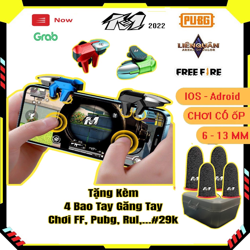 Bộ 2 nút bắn PUBG S07-V4 bản 6 ngón 4 nút mới nhất tay cầm chơi game điện thoại phụ kiện hỗ trợ free firee Tặng bao tay