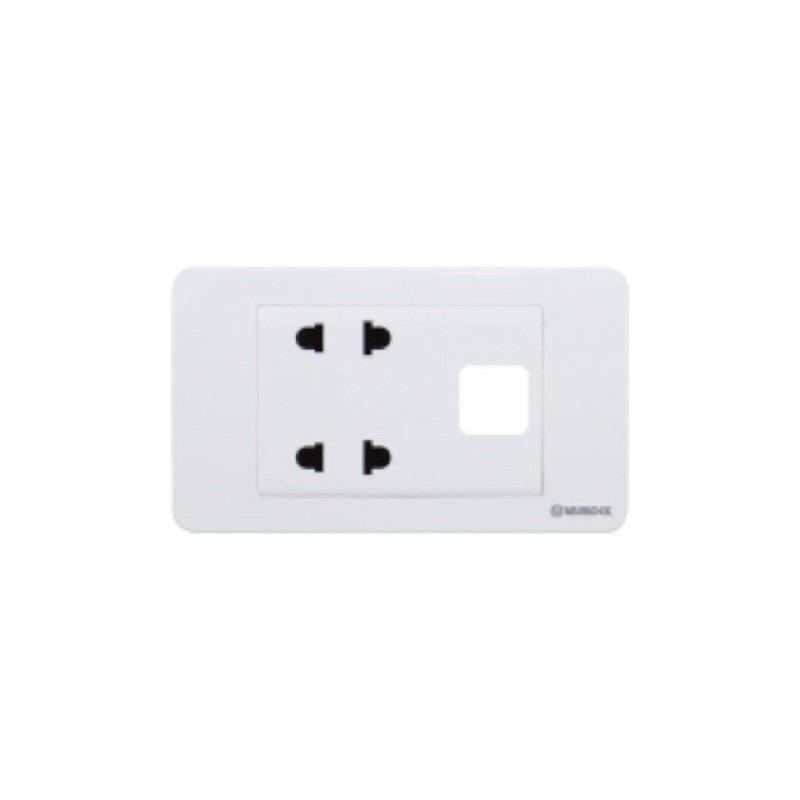 Mặt đã bao gồm 2 ổ cắm 2 chấu, quý khách có thể lắp thêm 1 hoặc 2 hạt công tắc, đèn báo...